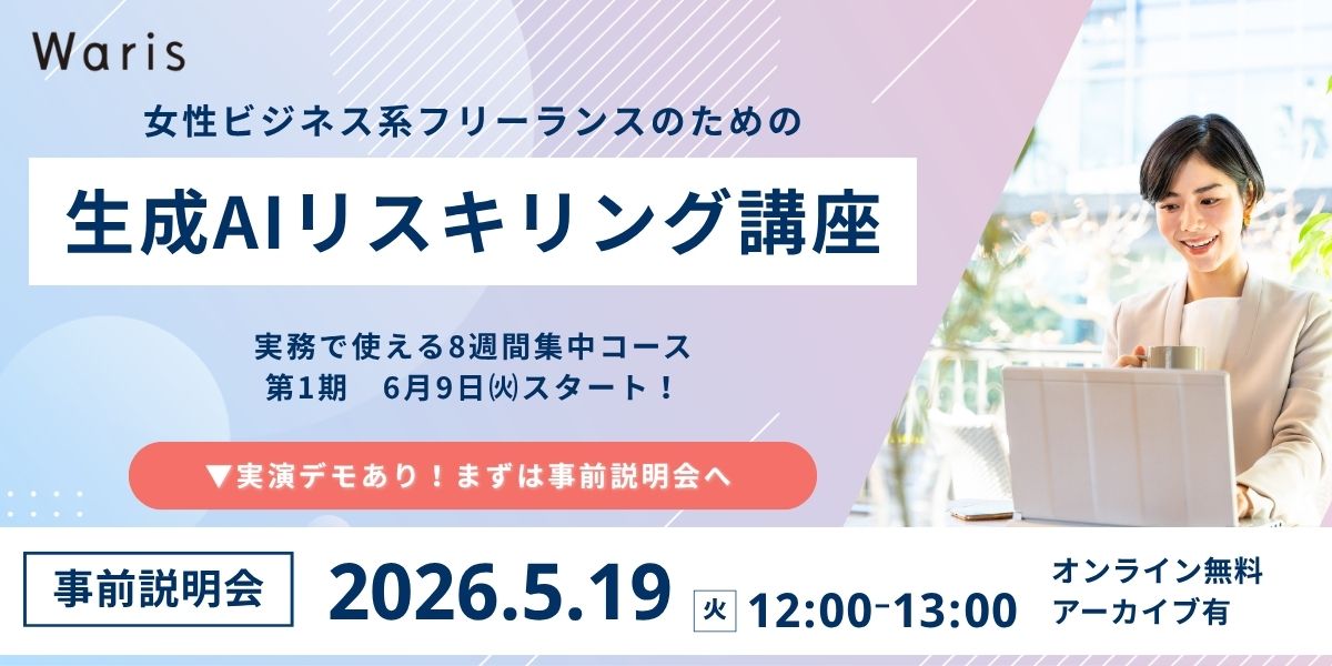 広報やマーケティング、HRなどビジネス系プロフェッショナル領域の仕事ニーズと女性フリーランスをマッチングするサービスです。