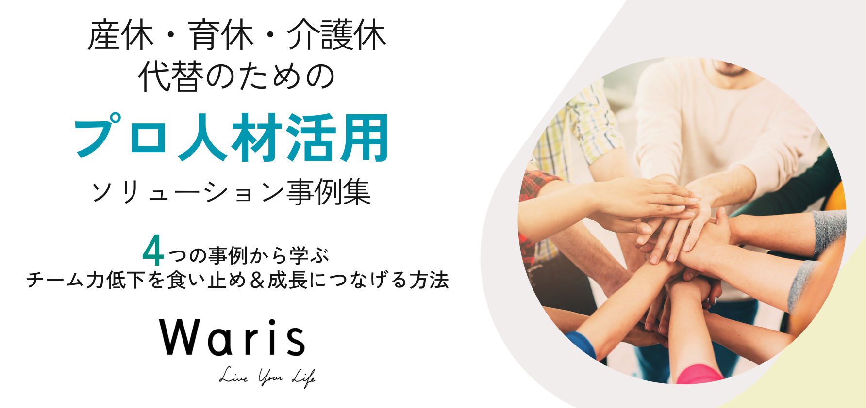 Warisでは、産休・育休・介護休の代替要員として、経験豊富な女性プロフェッショナルをご紹介します。