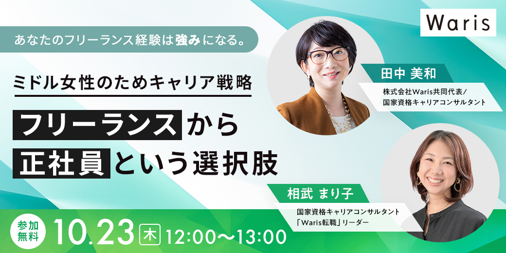 イベント|10/23(木)ミドル女性のためのキャリア戦略──フリーランスから正社員という選択肢