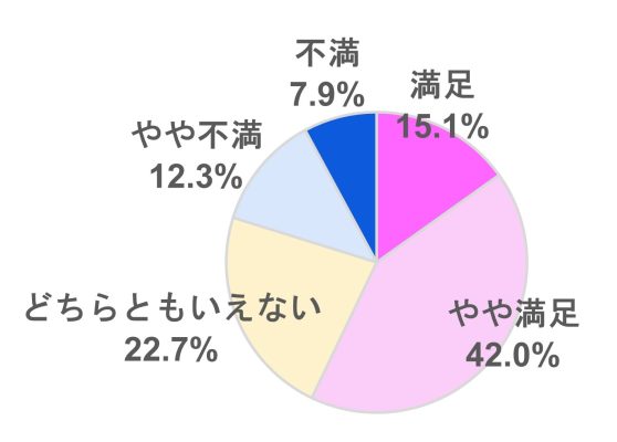 現在の仕事への満足層(満足・やや満足/57.1%)の最大理由は、リモートワーク等の導入により「仕事と家庭の両立が物理的に楽になった」という環境面です。一方で不満層(不満・やや不満/20.2%)は、評価制度の不透明さや、昨今の「出社回帰」への抵抗感を理由に挙げています。